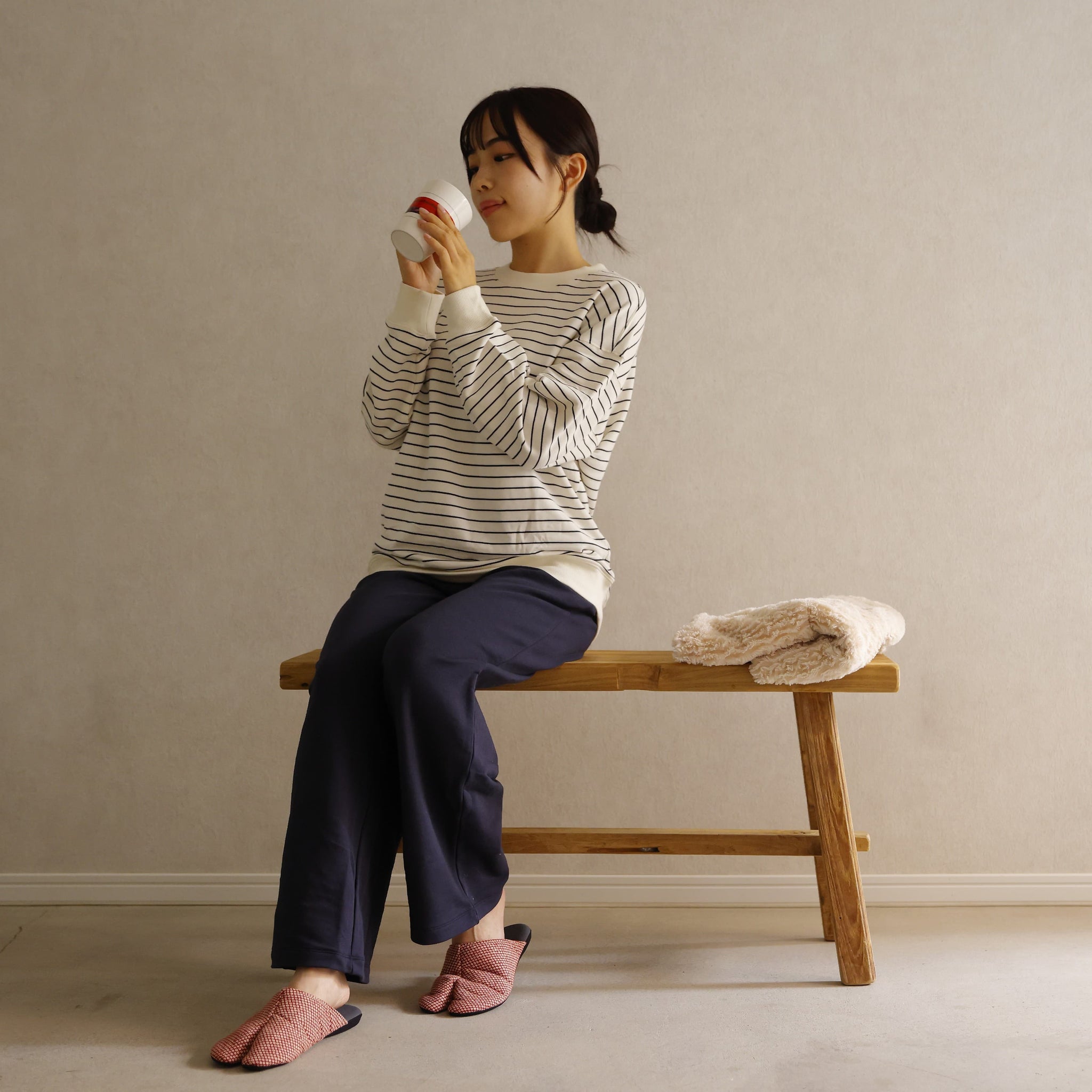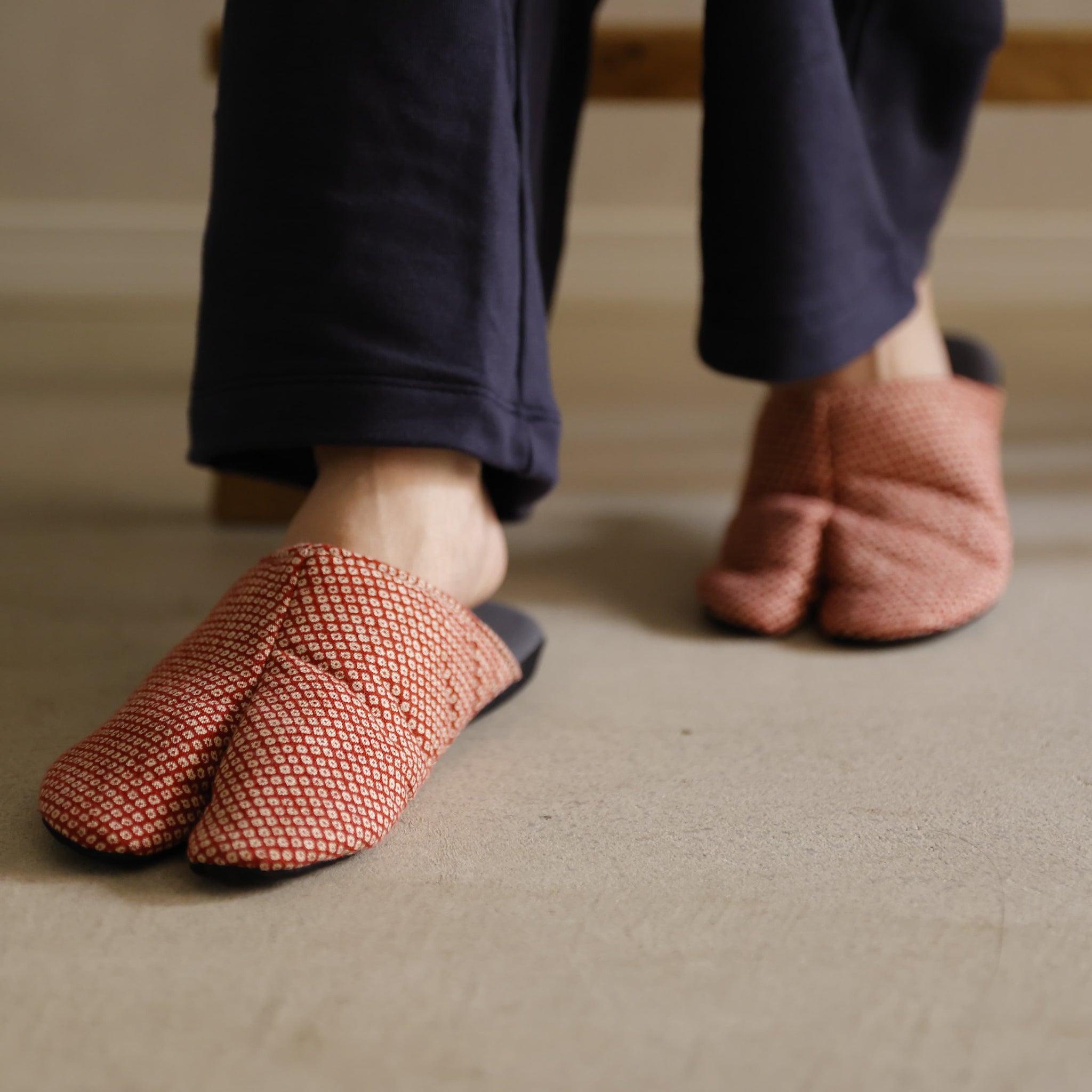 Shop TABI-JI's original slippers featuring traditional Japanese pattern called “Kanoko” (fawn’s back). Split-toe form offers more stability when standing. Washable at home by putting them in a washing net. Good choice as a gift for that deserving someone.