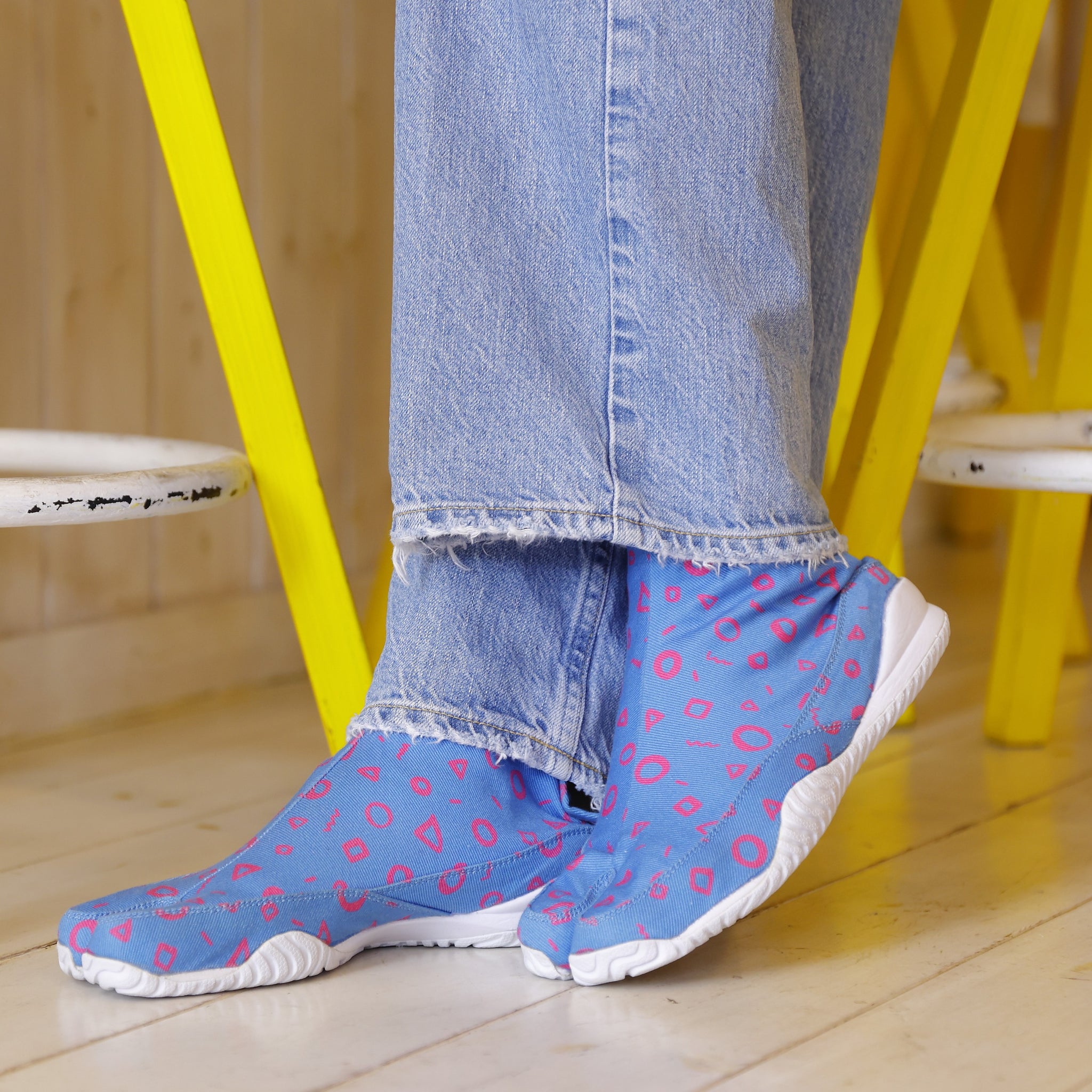 ブラック、ブルー、イエローの3色展開で、ポップな柄とバイカラーの配色は目を引くこと間違いなし!シンプルな服装にインパクトある◯△▢足袋スニーカーを合わせることによってファッションの幅が広がります。